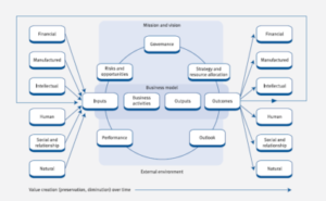At the core of the value creation process is an entity’s business model, which draws on various capitals and inputs, and by using the entity’s business activities, creates outputs (products, services, by products, waste) and outcomes (internal and external consequences for the capitals).